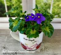 Крупные простые синие звезды. Розетка крупнее чем у сорта, листики темнее, такие же сильно фестончатые, герл. Полумини.
