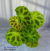 Ризомный природник из Вьетнама. Очень напоминает бегонию masoniana, но отличается формой креста, наличием широкой каймы и более светлым оттенком зелени основного фона. Весь лист покрыт текстурными пупырками