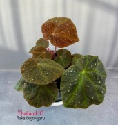 Новинка. Ризомная природная бегония из Тайланда. Округлые сердцевидные болотного цвета листики с прожилками и белыми горошками.