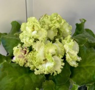 Бело-кремовые кипельные махровые цветы с салатовым краем и изнанкой. Шапочное цветение на зеленой аккуратной розетке. 2021
