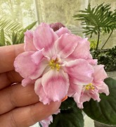 Смесь осы со звездой, будто множество лепестков разного размера и формы густо-густо нанизывали на нить и потом туго стянули. Лепестков нанизывали щедро, больше, чем можно было бы стянуть в симметричный цветок. Этот сорт в первую очередь советую тем, кто жалуется, что у него плохо цветут фиалки. Этот сорт вы не увидите без цветов.