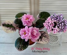 Цветы - жемчужины! Необычные махровые с чашевидными лепестками, пепельно-розовые цветы с серебристым напылением снаружи и коричневато-зелёные изнутри. Внутренняя поверхность цветка имеет ярко-выраженный венозный рисунок. Очень длительное, практически непрекращающееся цветение даже при высокой температуре. В процессе роста и роспуска цветов букет переливается всевозможными оттенками розового, розово-пепельного, кремового, коричневато-кофейного и даже малинового в обрамлении широкой зеленовато-коричневой каймы. Бесконечное разнообразие в течении всего цветения, которое может продолжаться пока не удалишь цветоносы.Ровная компактная розетка средне-зелёных листьев. Сорт для любителей вечноцветущих.