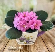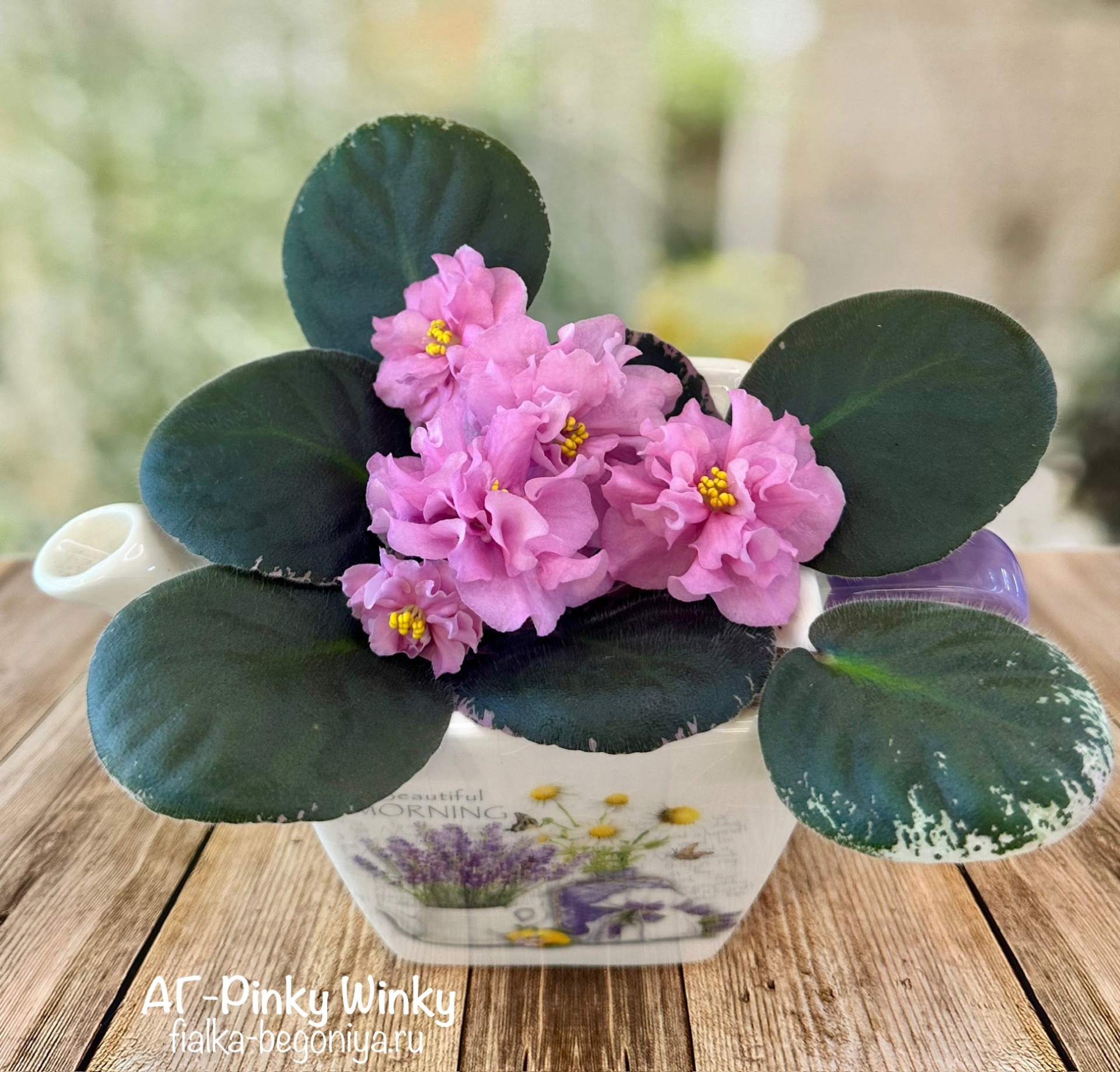 Крупные махровые розовые цветы на красивой пестролистной розетке
