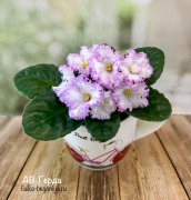 Простые и полумахровые гофрированные белые полуколокольцы с ярко-розовым с зеленцой краем. Стеганные средне-зеленые листья. Парная с АВ-Кай. 2016