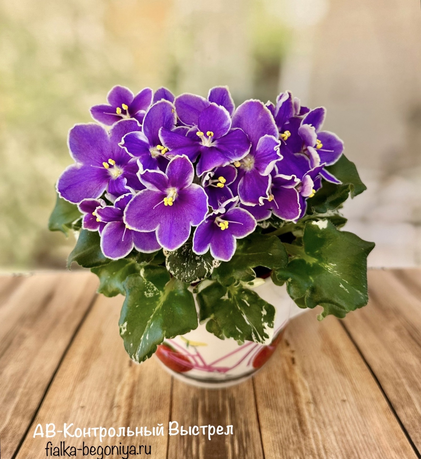 Простые синие с пурпурной обводкой лепестков, пурпурным глазком и белым краем. Обильное цветение. Средне-зеленые герл листья с салатовой "звездочкой" и бело- розовой "камуфляжной" пестролистностью. Полумини или малый стандарт. 2020 г.