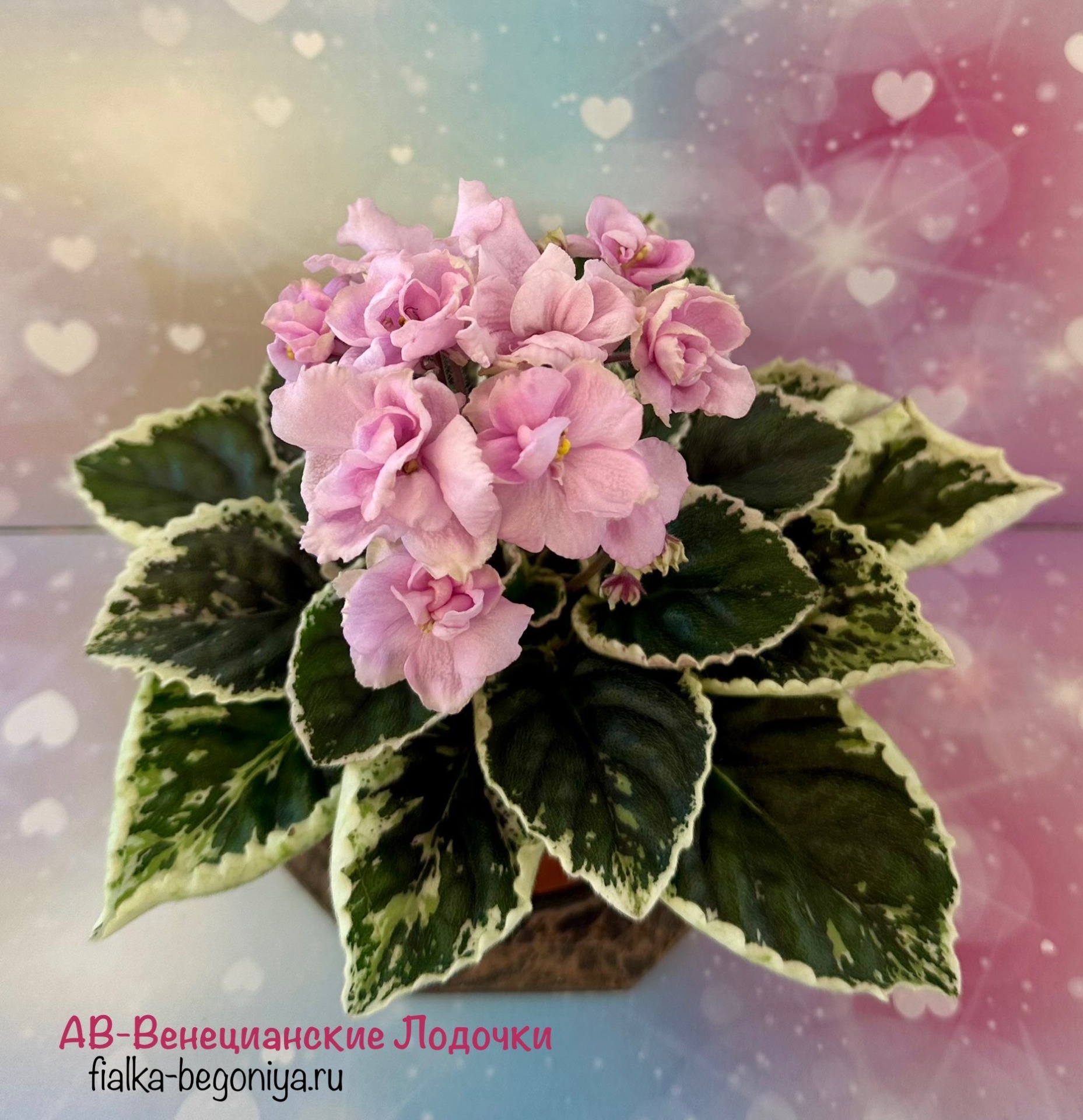 Полумахровые розовые звезды. Темно-зеленые зубчатые листья в форме "лодочки" с белой окаймляющей пестролистностью. Полумини или малый стандарт. 2020