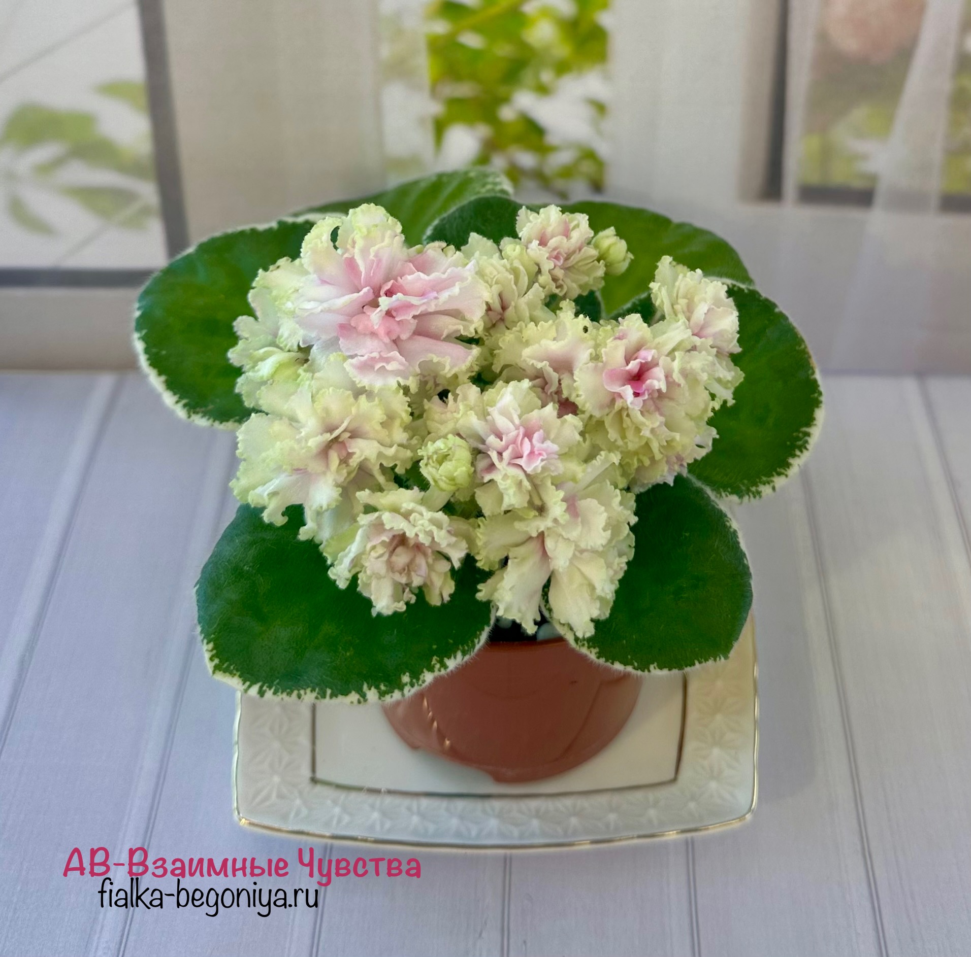 Крупные гипермахровые розовые гофрированные звезды с бело-салатовой каймой. Средне-зеленые зубчатые стеганные листья с белой окаймляющей пестролистностью. 2022