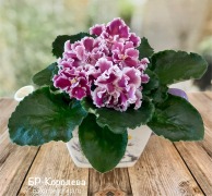 Новинка каталога. Огромнейшие (до 9 см), махровые цветы в тёмном, насыщенном цвете с элегантной каймой. Аккуратная и ровная розетка.