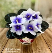 Огромные (более 7см) округлые белые звёзды с синим глазком. Красивый выставочный пестролистник из тёмно-зелёных листьев с розово-кремовыми краями. 2022