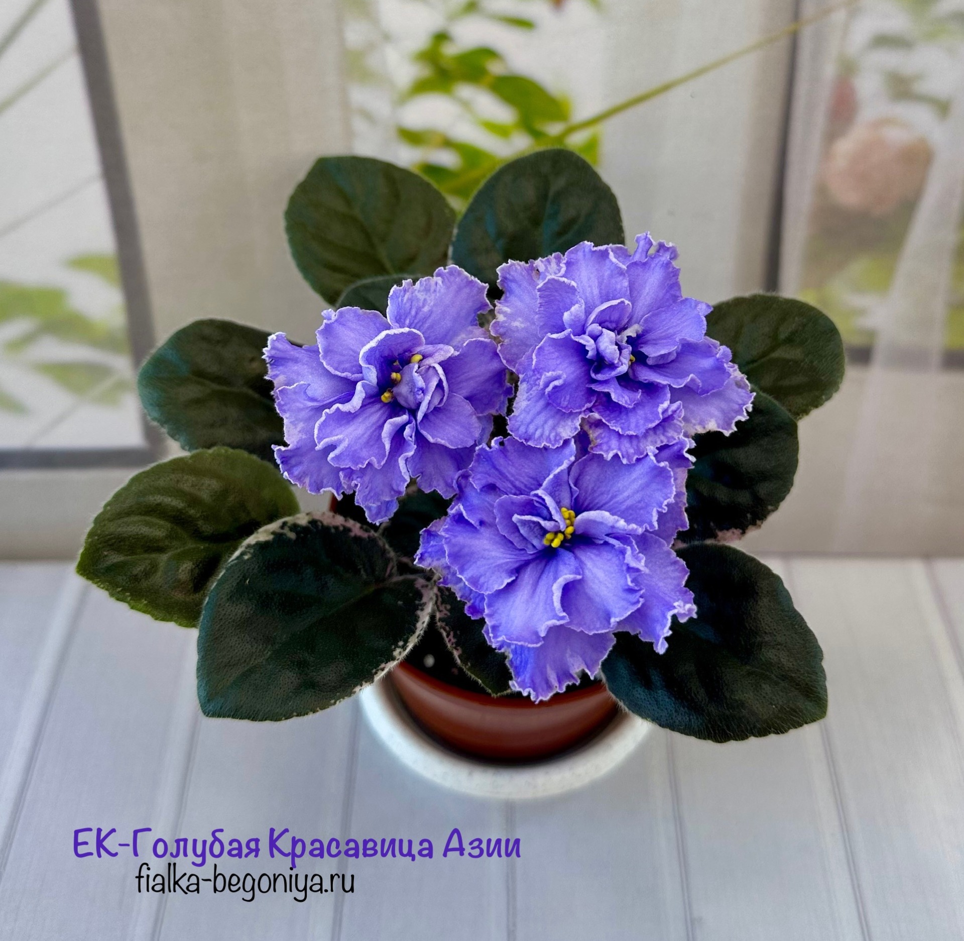 Очень крупные махровые нежно-голубые цветы с жилочками, края лепестков обведены тонким зелёно-бронзовым кантом. Красивый пестролистник из тёмно-зелёных удлинённых зубчатых листиков с широкими лиловыми краями. Цветение шапкой. Чистейший голубой цвет. Прелесть! Голубая Красавица Азии — это известное в мире драгоценное ожерелье, в центре которого красуется великолепный сапфир весом 392,5 карата. 2020