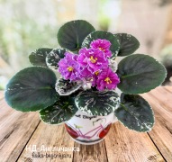 Полумахровые яркие розовые цветы с тёмными ручейками по цветку, белая волнистая кайма. Красивая пестролистная розетка. Букетное цветение.