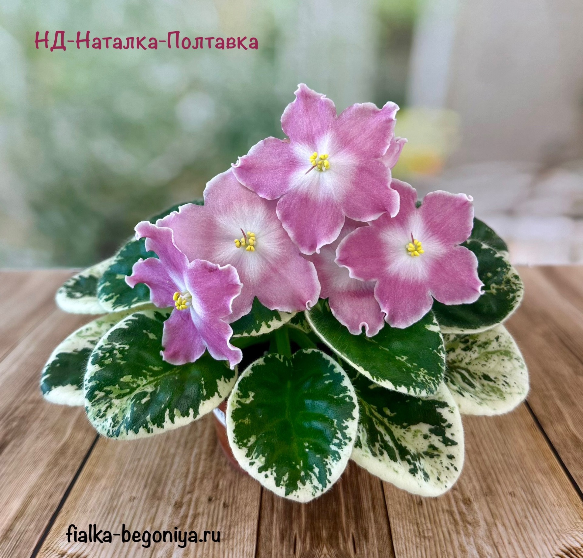 Крупные простые белые звёзды с яркими лососевыми напечатками. Ровная аккуратная пестролистная розетка. Яркий эффектный сорт, как и все Наташки!!!