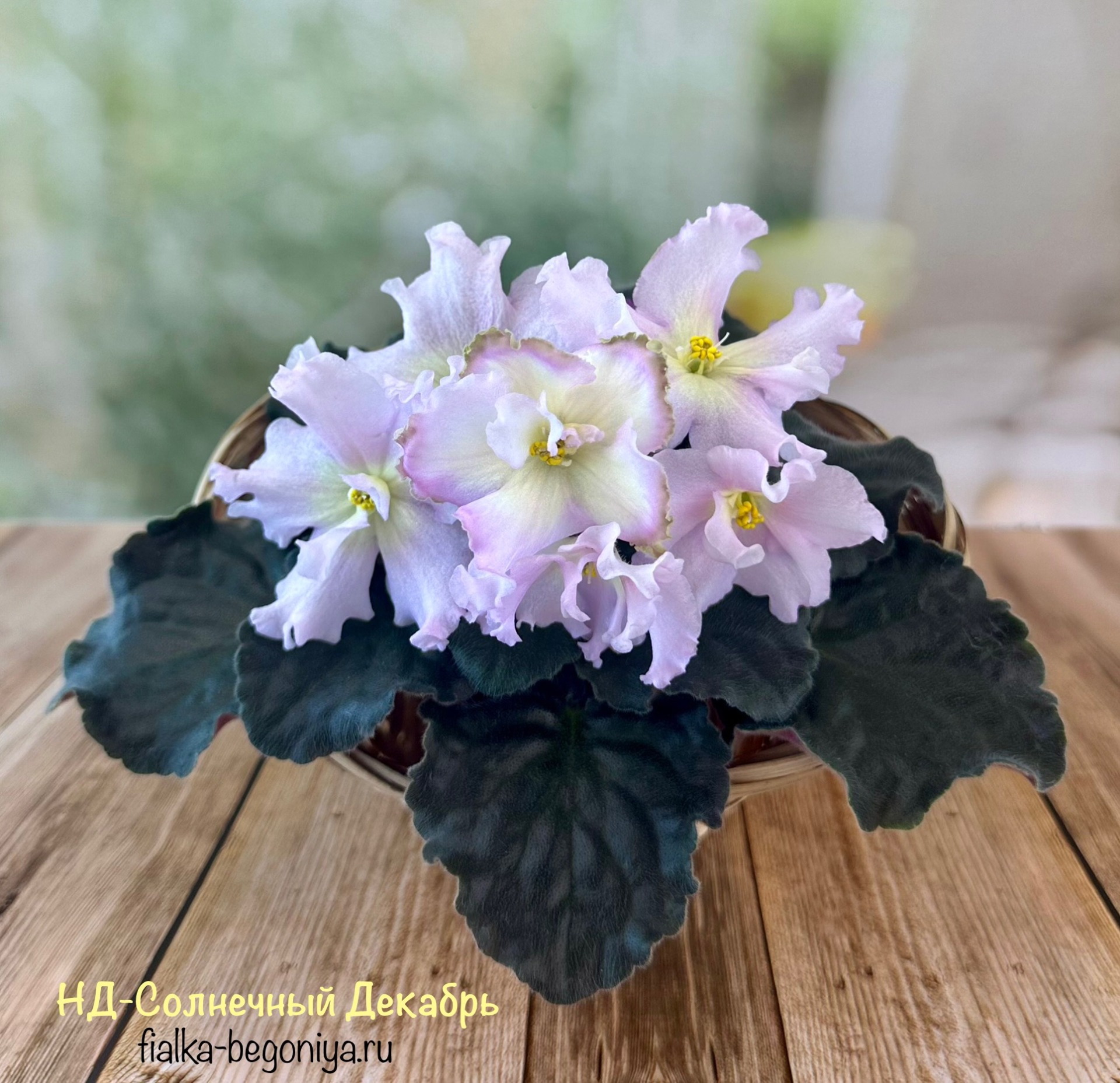 Полумахровые волнистые розовые цветы с жёлтым центром и с редкой зелёной бахромкой.