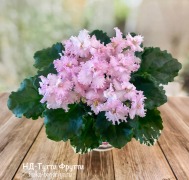 Кружевные нежные светло-розовые полумахровые анютки с гофрированной каймой. Тёмно-зелёный блестящий пестролистный слегка волнистый лист.