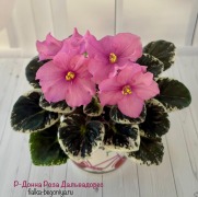 Крупные махровые цветы очень темного бархатистого синего цвета на пестрой розетке герл листвы, смотрится очень эффектно, цветы не выгорают, розетка отлично формируется, цветоносы крекие. Пара к сорту Р-Девочка Моя Синеглазая.