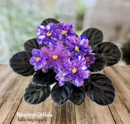 Махровые темно фиолетовые цветы-розочки. Розетка темно-зеленая, плоская, опушенная, блестящая, с красной изнанкой. Серия - State Parks