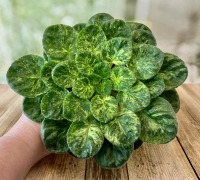 Крупные простые и полумахровые сильно-волнистые розовые звезды с белым центром и широкой Белой каймой. Зелено-белый компактный пестролистник. Сенполия, способная украсить любую коллекцию!